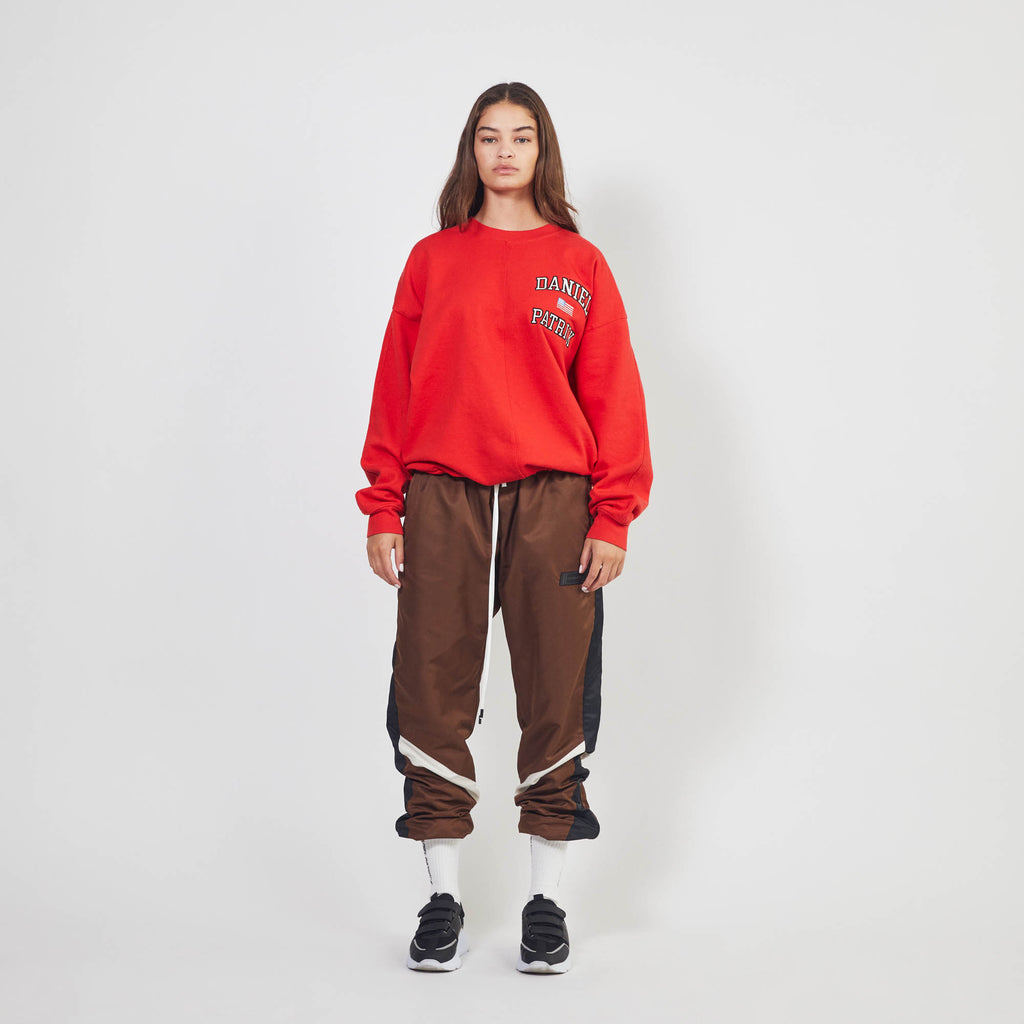 These track pants have a relaxed fit, with a drop crotch, ankle zips and 3 zippered pockets.