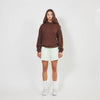 This hoodie has a relaxed fit, featuring an adjustable bungee at the waist and our signature center seam detail. It has somewhat of a boxy fit, with dropped shoulders and length that is meant to hit right at your belt line.